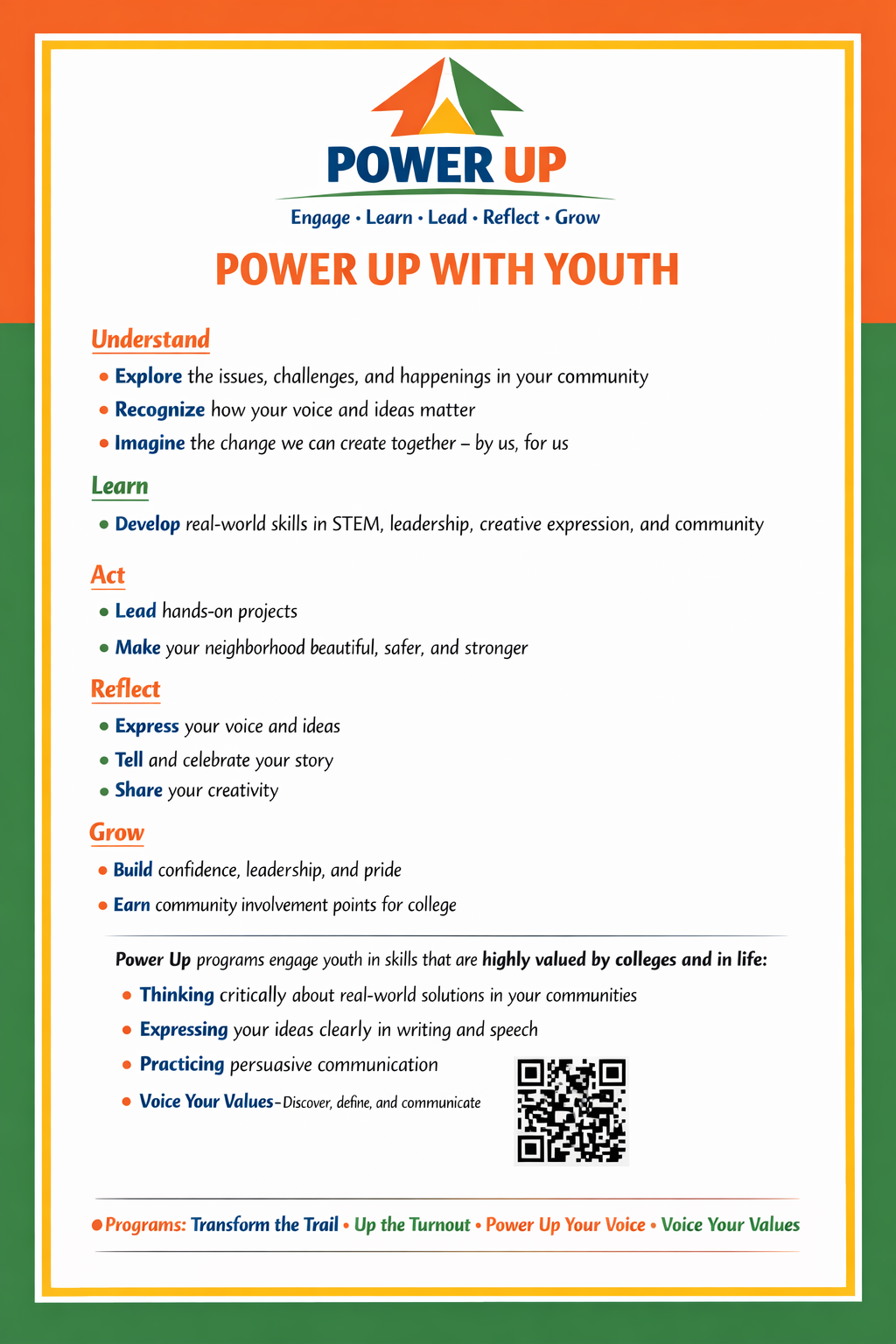 Power Up with Youth is more than just a campaign—it’s a movement. Whether you’re a student looking to get involved, a parent supporting our initiatives, or a community member eager to help, there’s a way for you to make a difference.